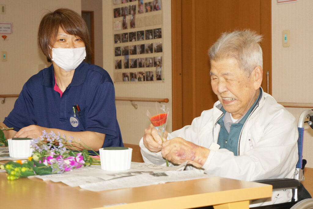 ウチのホームは社長もお花好きだから…チョイチョイ鉢植えとかをポケットマネーから買って持ってきてくださいったりします。