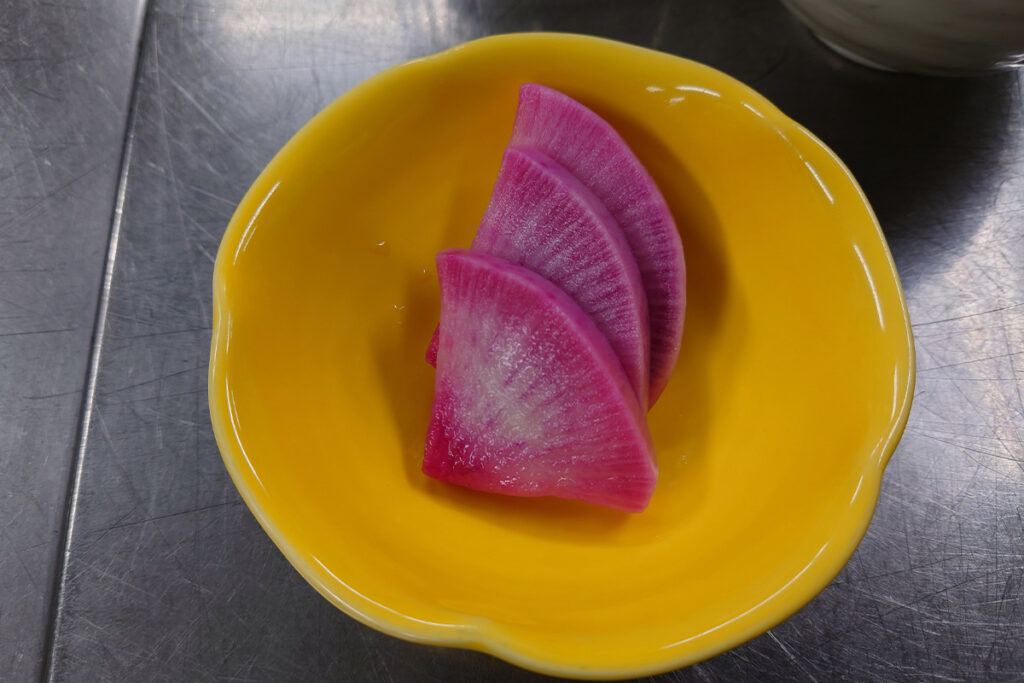 同じく手作りの紅芯大根の浅漬けも添えました。