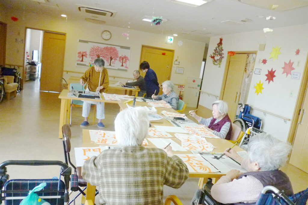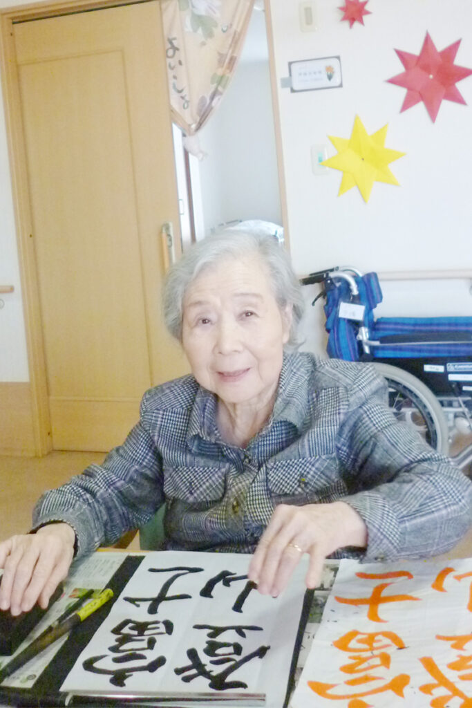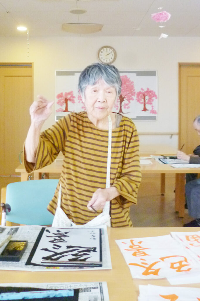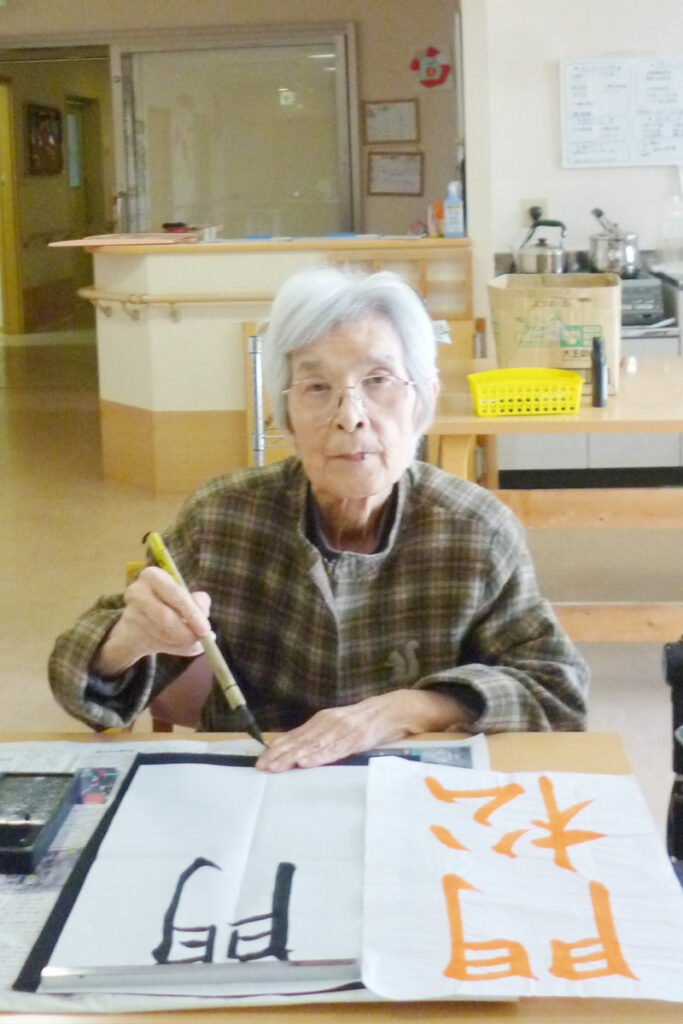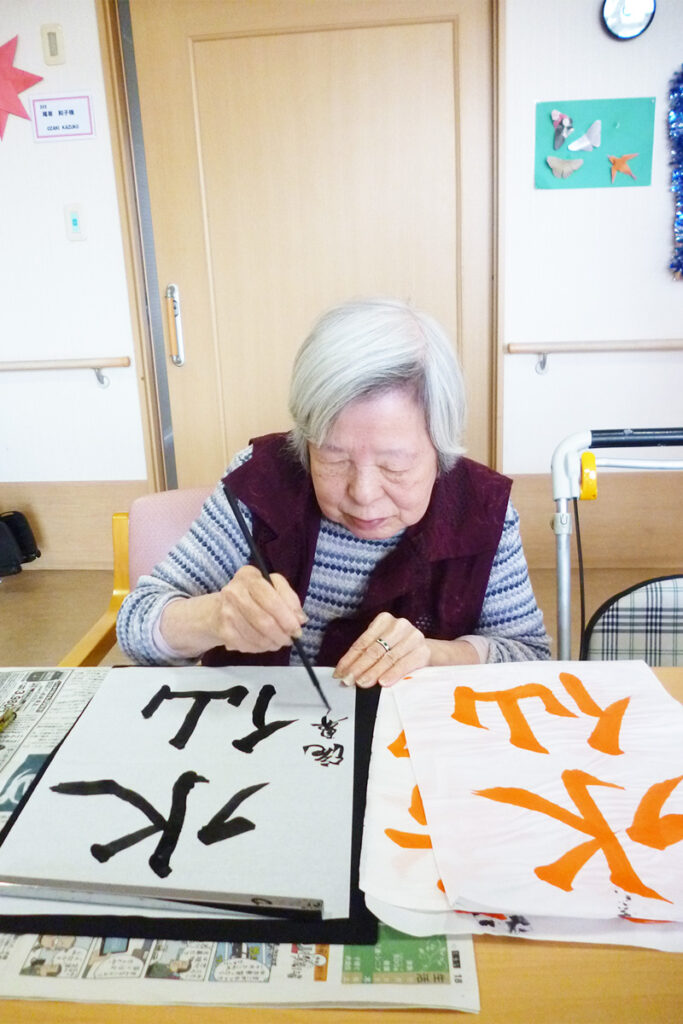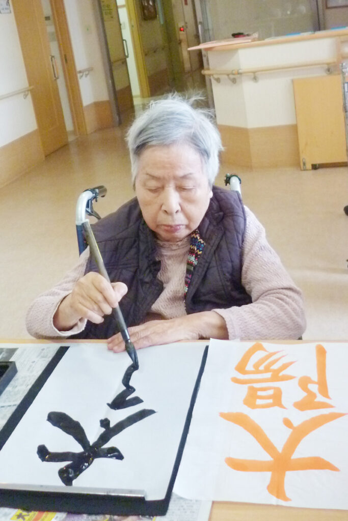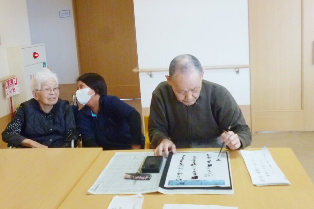 毎月開催している習字会は手指も使い、頭も使い…大事なイベントでもあります。それにしても皆さん上手にかけますね…