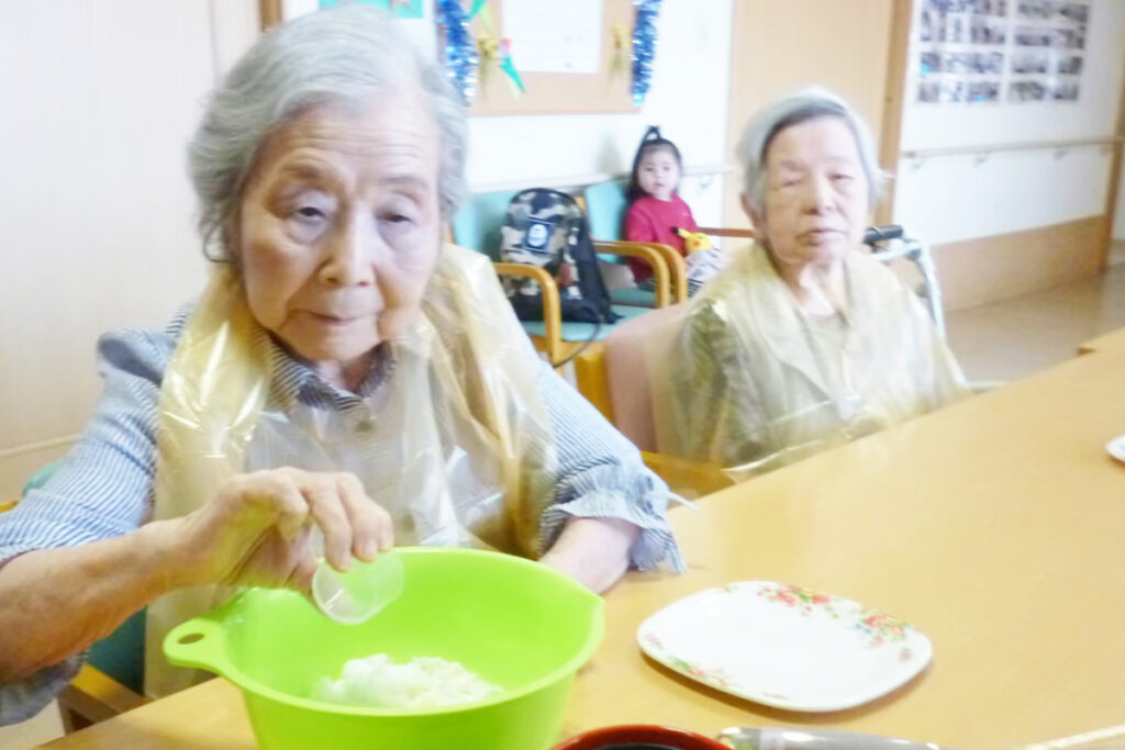 今までにも何度かやってきたので慣れた手つきと分担で上手におやつは完成していきました。