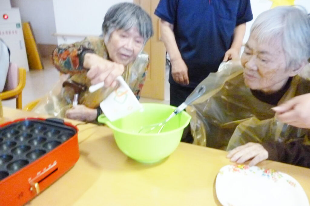 日常のおやつでも頭の体操…ということでやらる人がやれることを、皆で分担して今日はベビーカステラづくり。