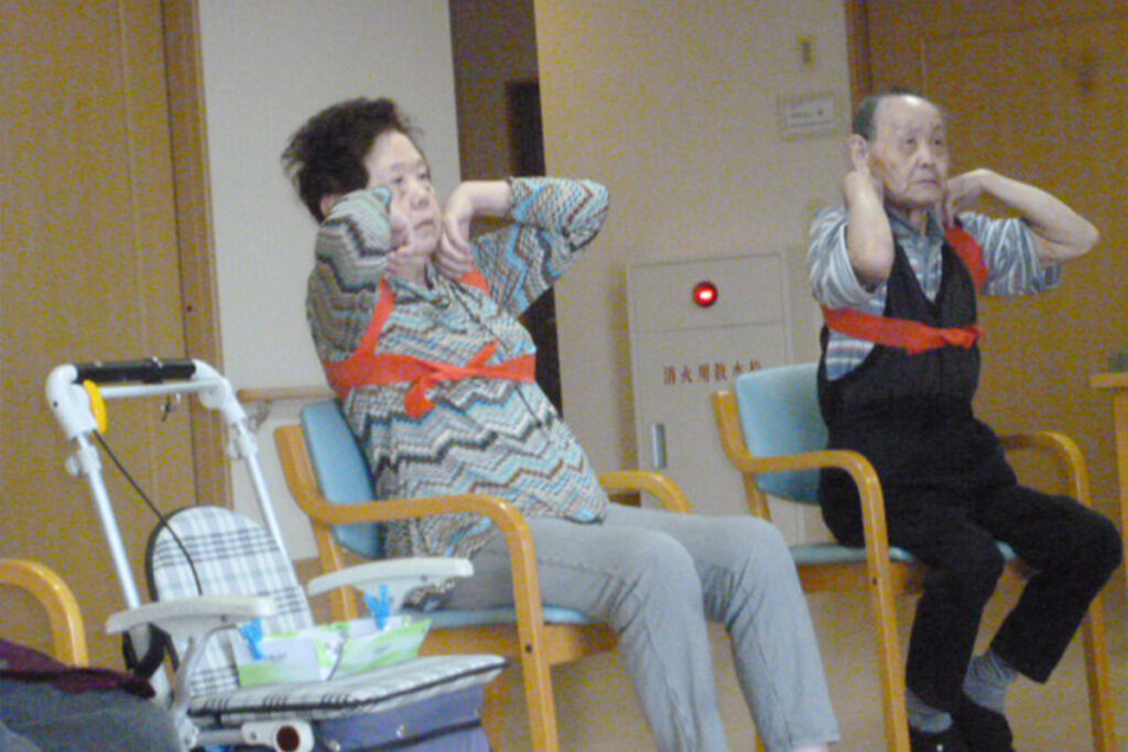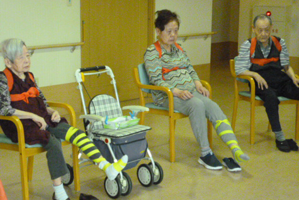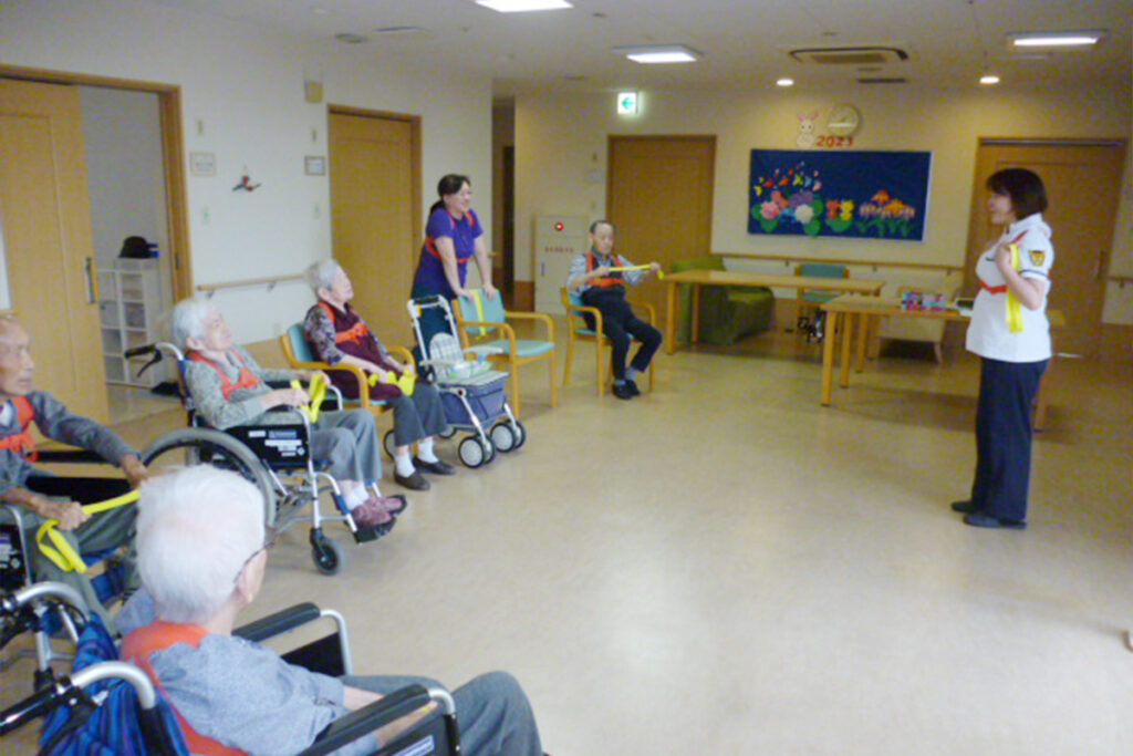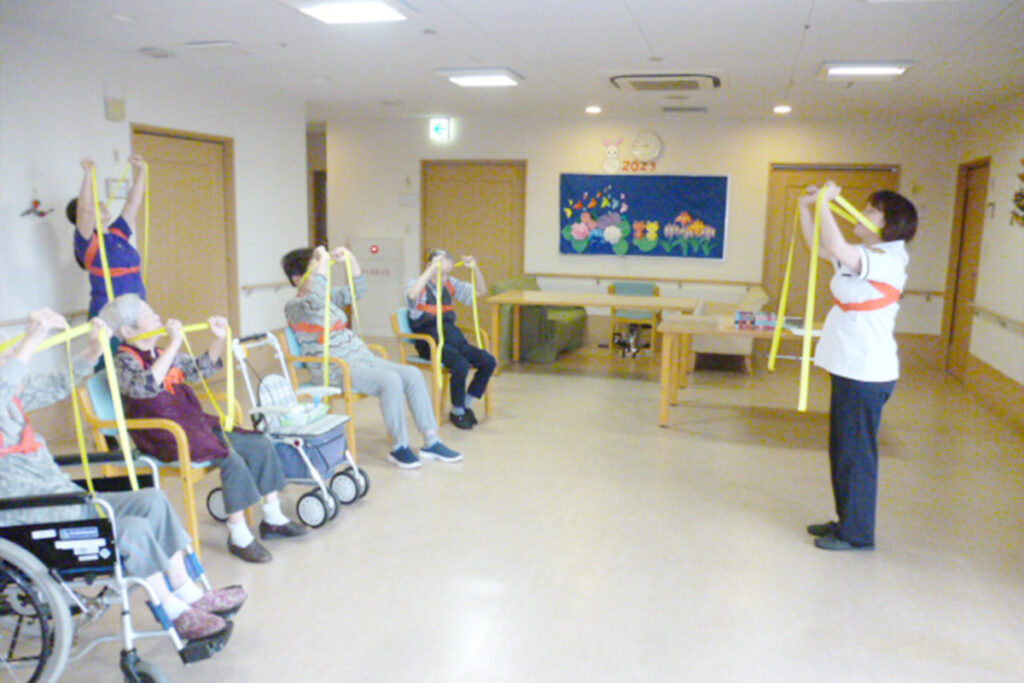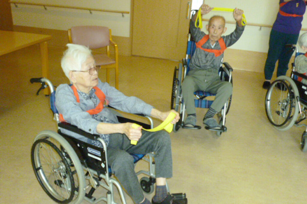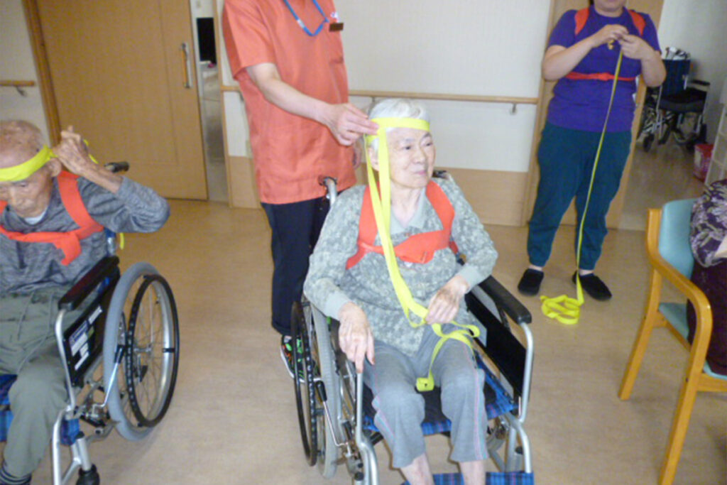 強さの違うゴムバンドを使ってちょっとずつの負荷をかけたり、逆にゴムバンドの伸縮力を使って不可を軽減して動きをサポートしたり…