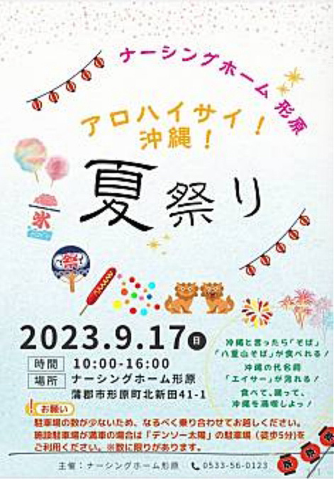 【イベント】9月17日 夏祭り@ナーシングホーム形原 詳細確定!